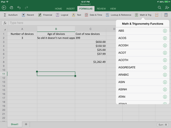 Alles in allem wurde Microsoft Excel im Vergleich zur Desktop-Version vereinfacht. Die App unterstützt aber die wichtigsten Funktionen. Außerdem stehen dem Nutzer schon viele Formeln zur Auswahl.