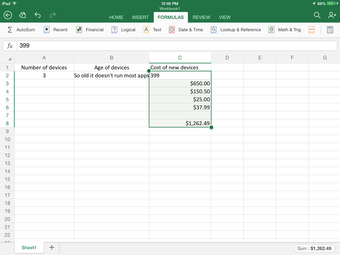 Per Fingertipp navigiert man zu verschiedenen Spalten und auch Gleichungen lassen sich einfach erstellen. Simple Funktionen wie das Erstellen von Tabellen für die Haushaltsführung gehen leicht von der Hand, kompliziertere Tabellen mit mehreren Gleichungen gestalten sich etwas schwieriger.